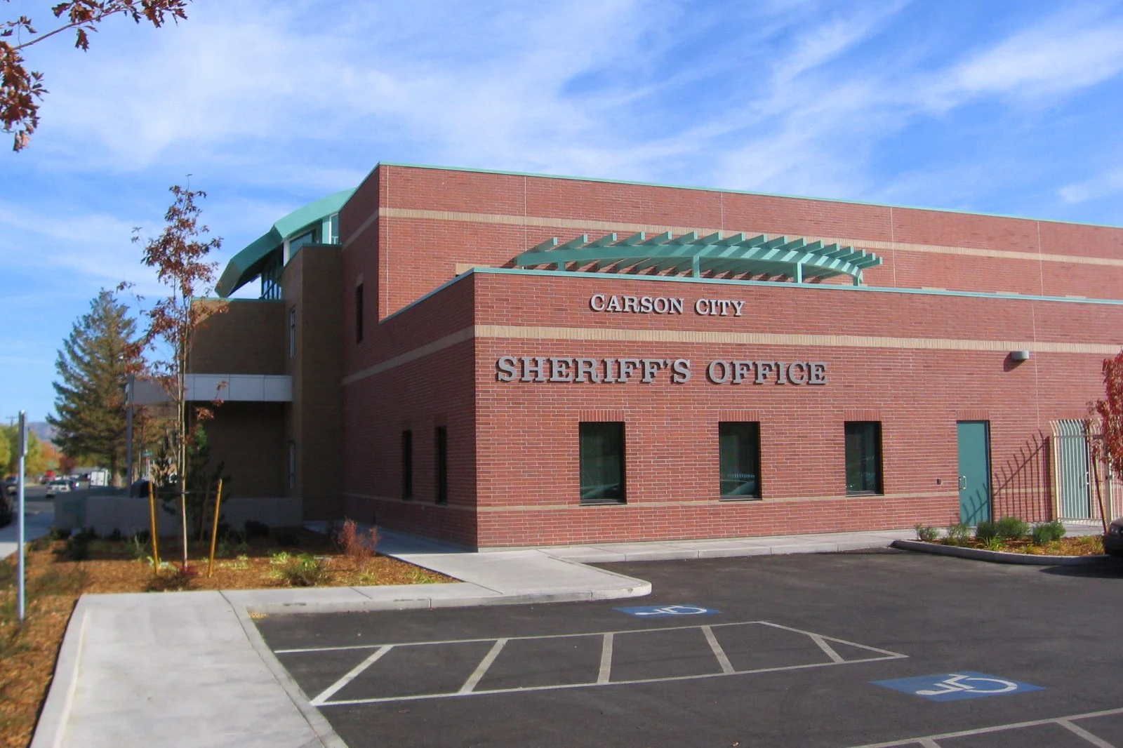 Two-story concrete, masonry, and structural steel office building for the Carson City Sheriff’s office.